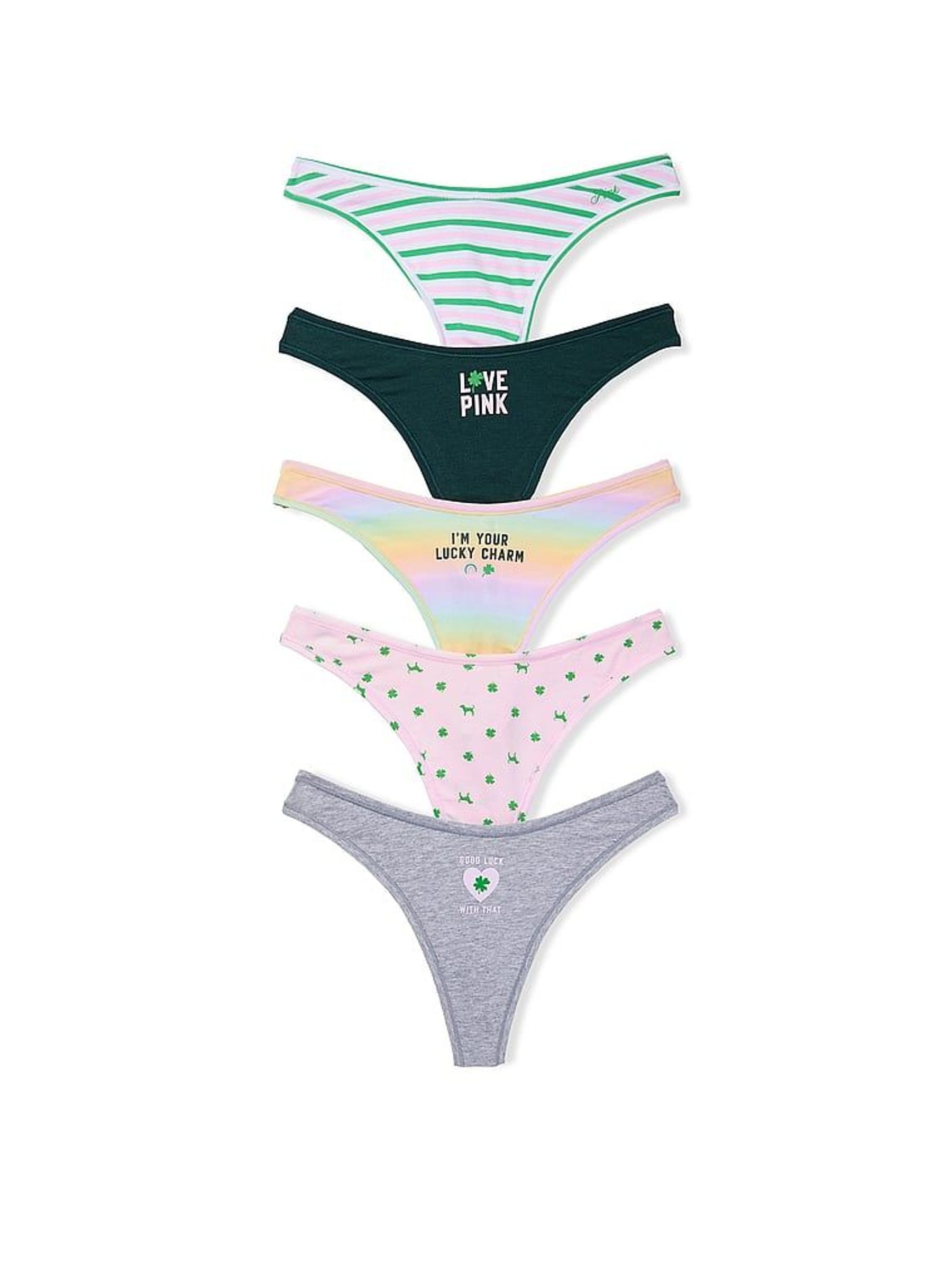 Pink/Grey/Green Thong 5 Pack Cotton Knickers