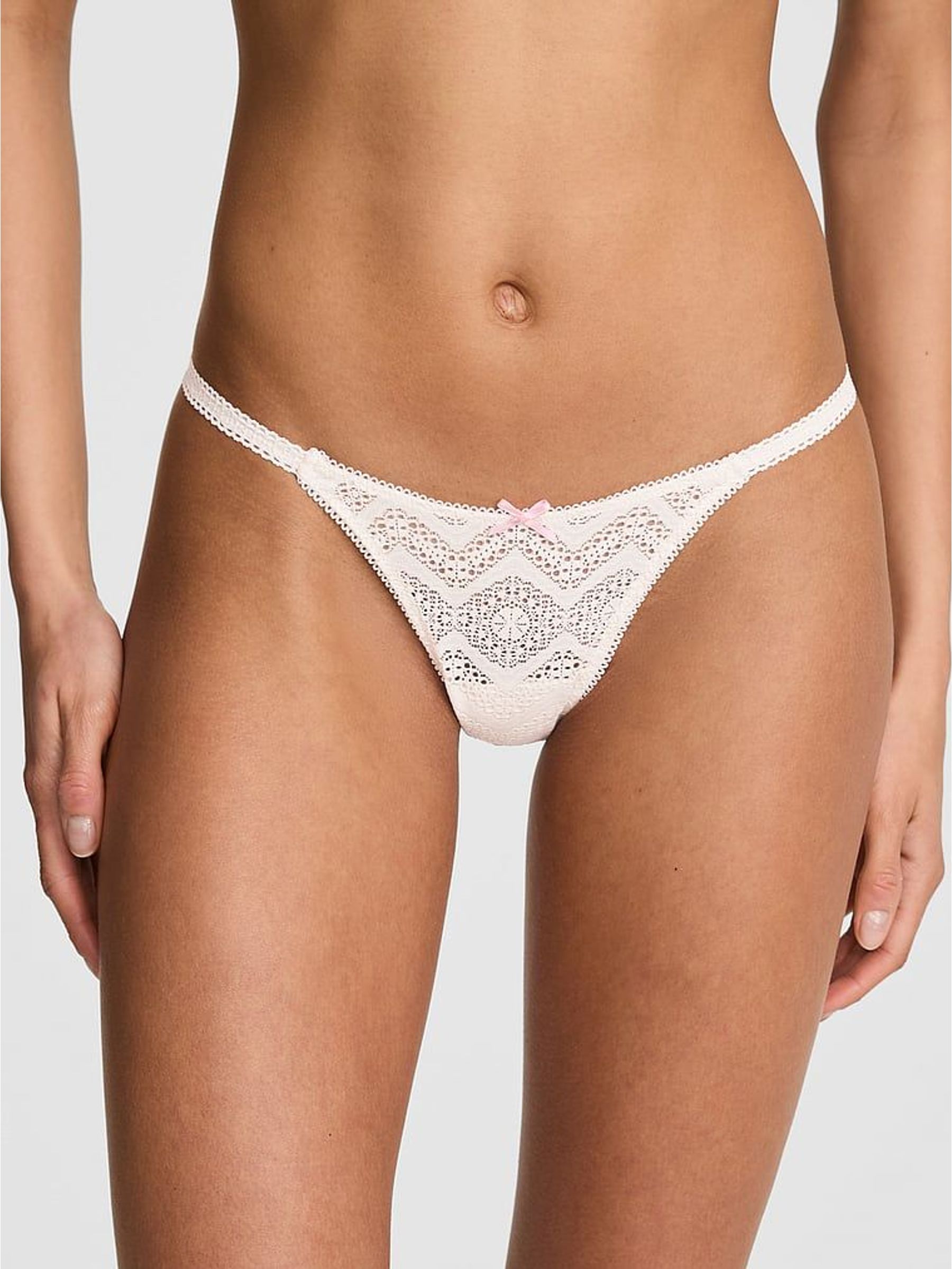 Coconut White Mini Scoop Thong Crochet Lace Knickers