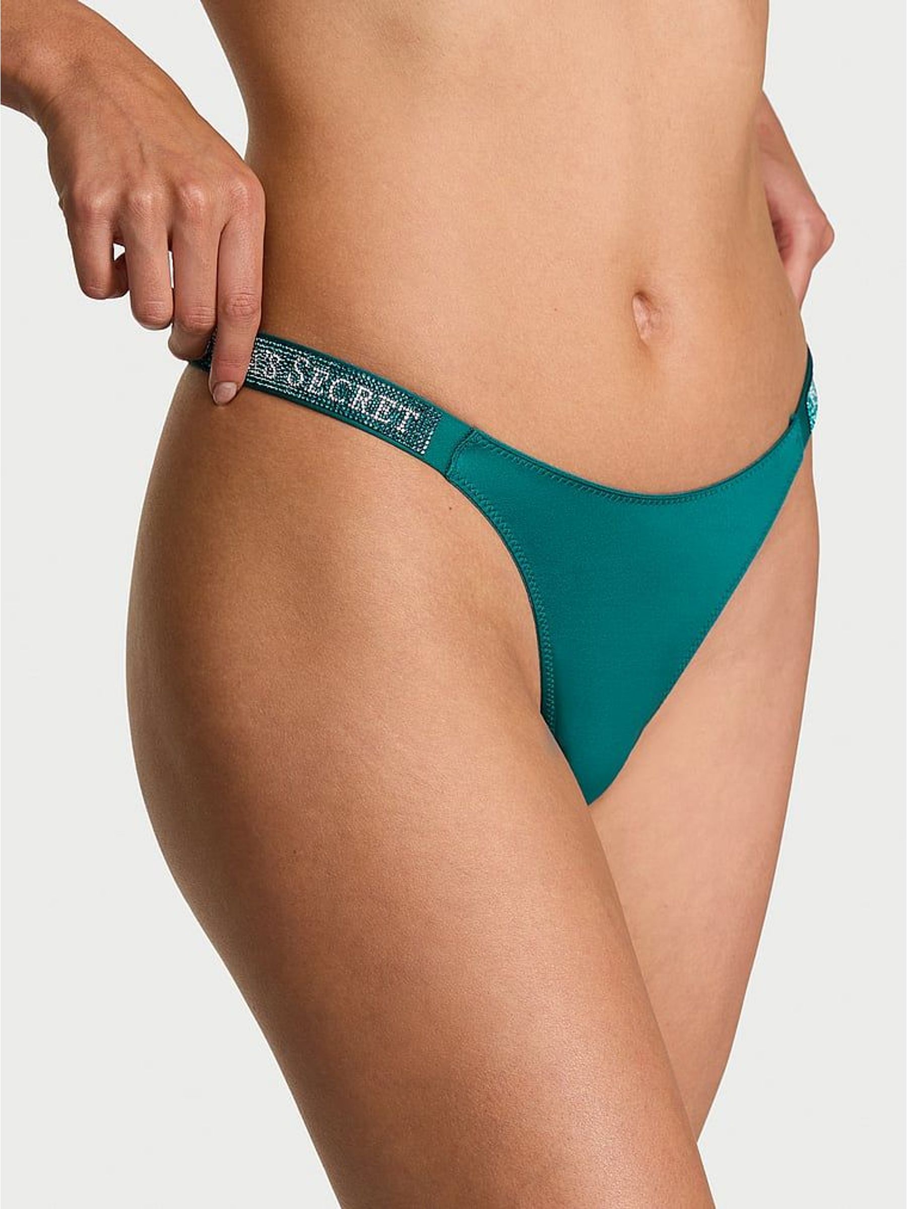 True Teal Blue Thong Shine Strap Knickers