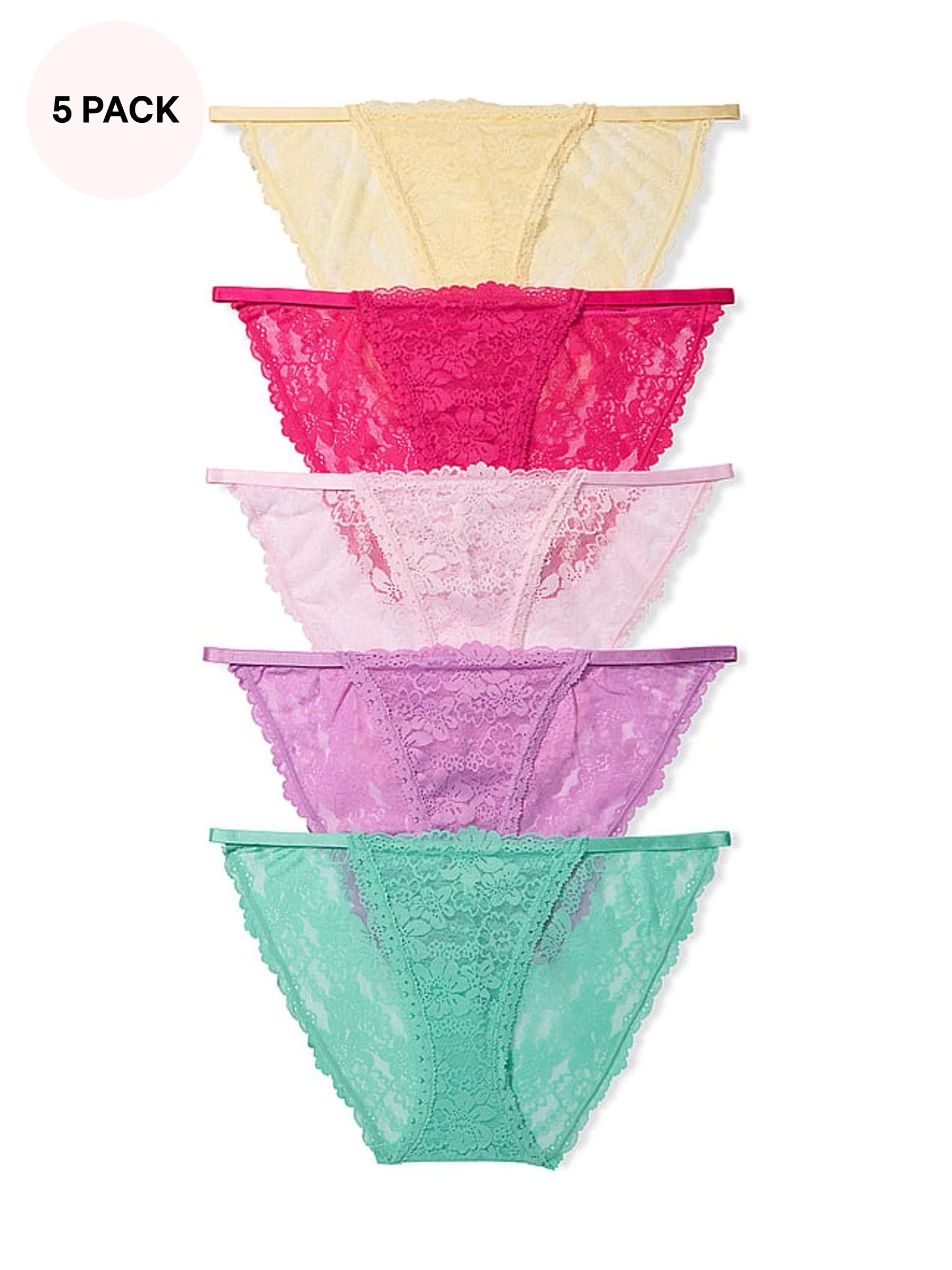 Yellow/Pink/Purple/Green String Bikini 5 Pack Lace Knickers