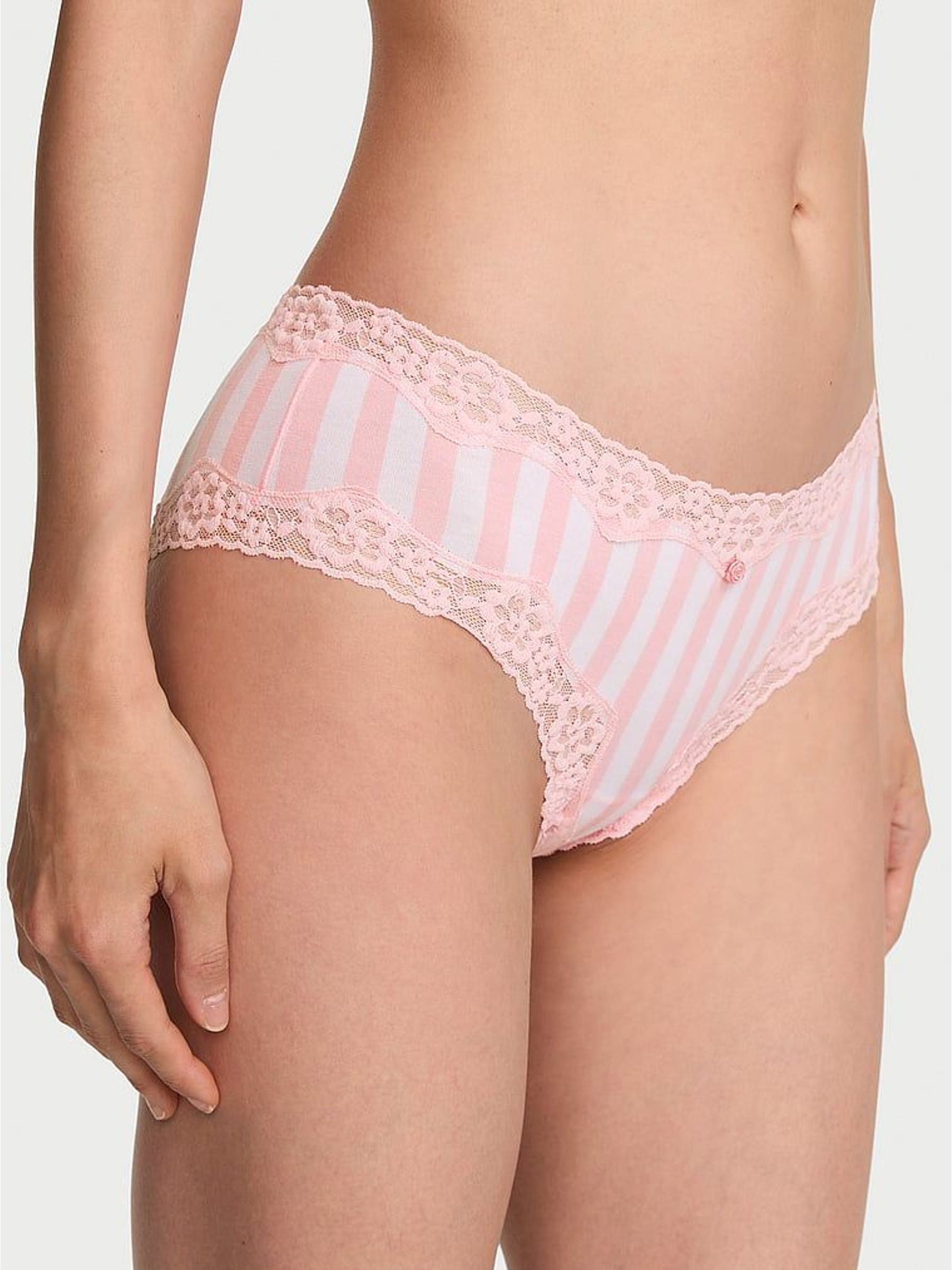 Pretty Blossom Pink Stripes Cheeky Cotton Lace Waist Knickers