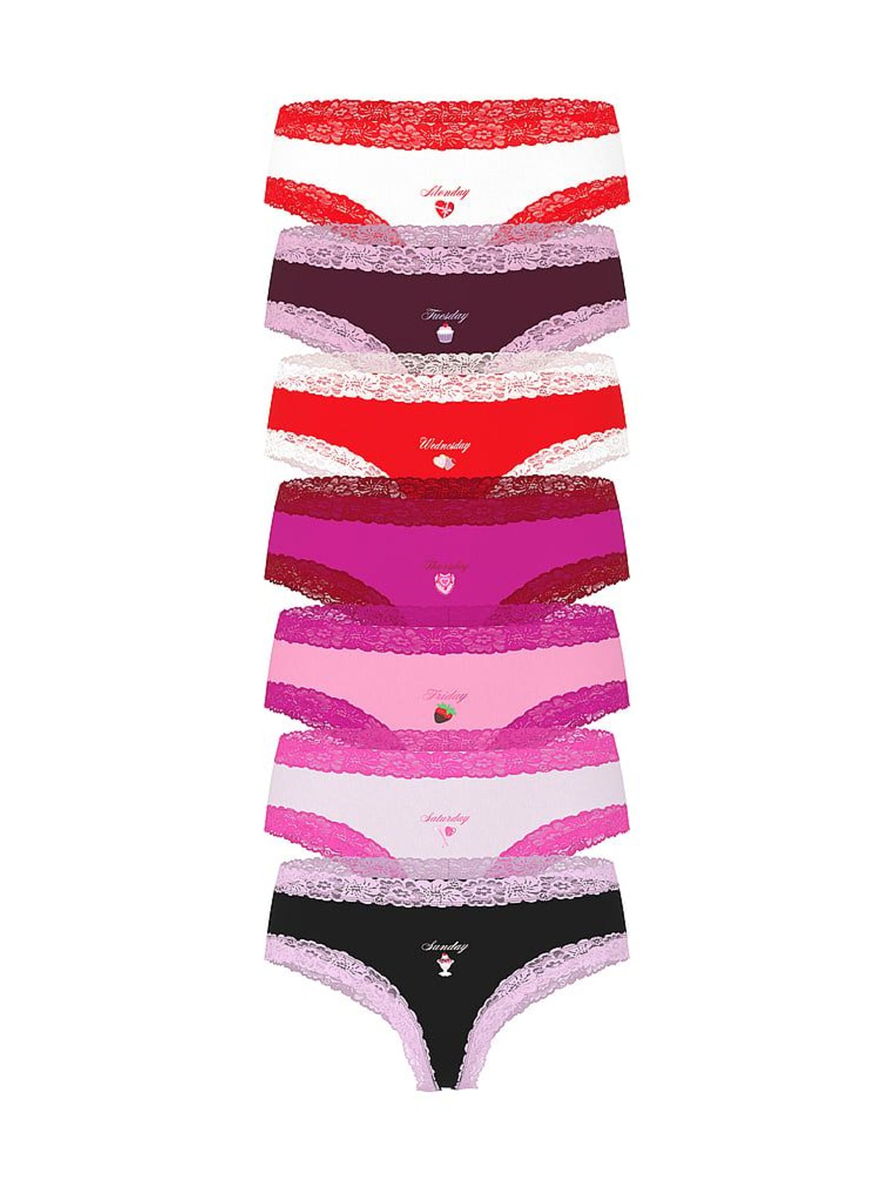 Red/Pink/Purple/Black Cheeky 7 Pack Days of the Week Knickers