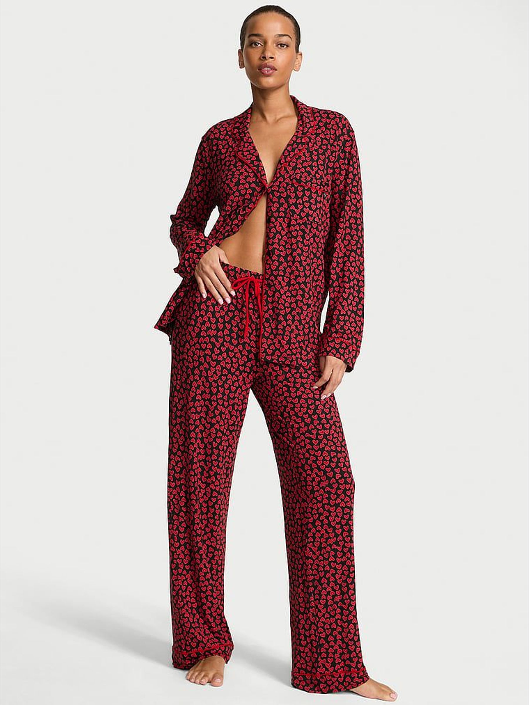 Black & Red Scattered Hearts Modal Long Pyjama Set