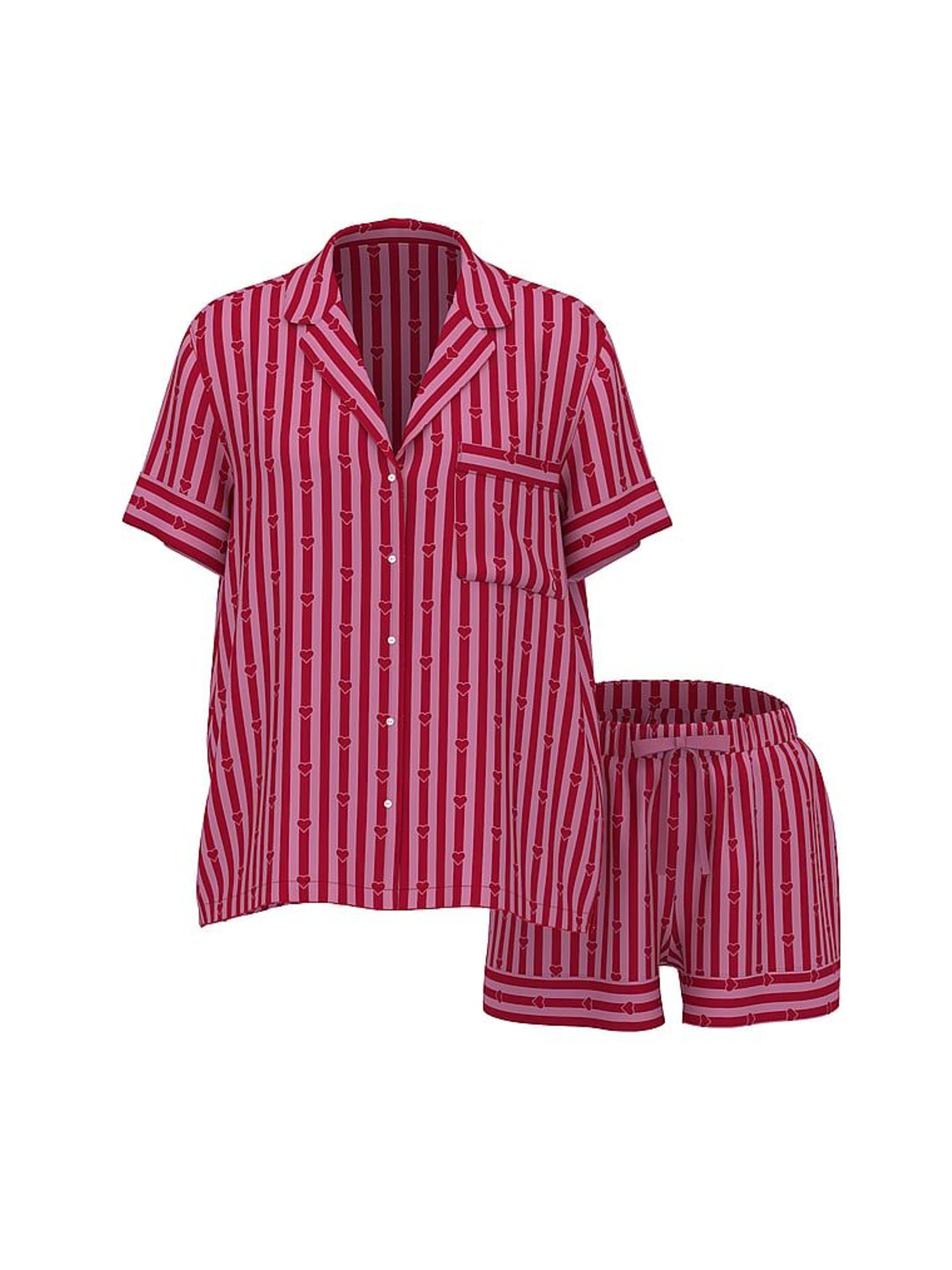 Red & Pink Heart Stripe Satin Short Pyjamas Set