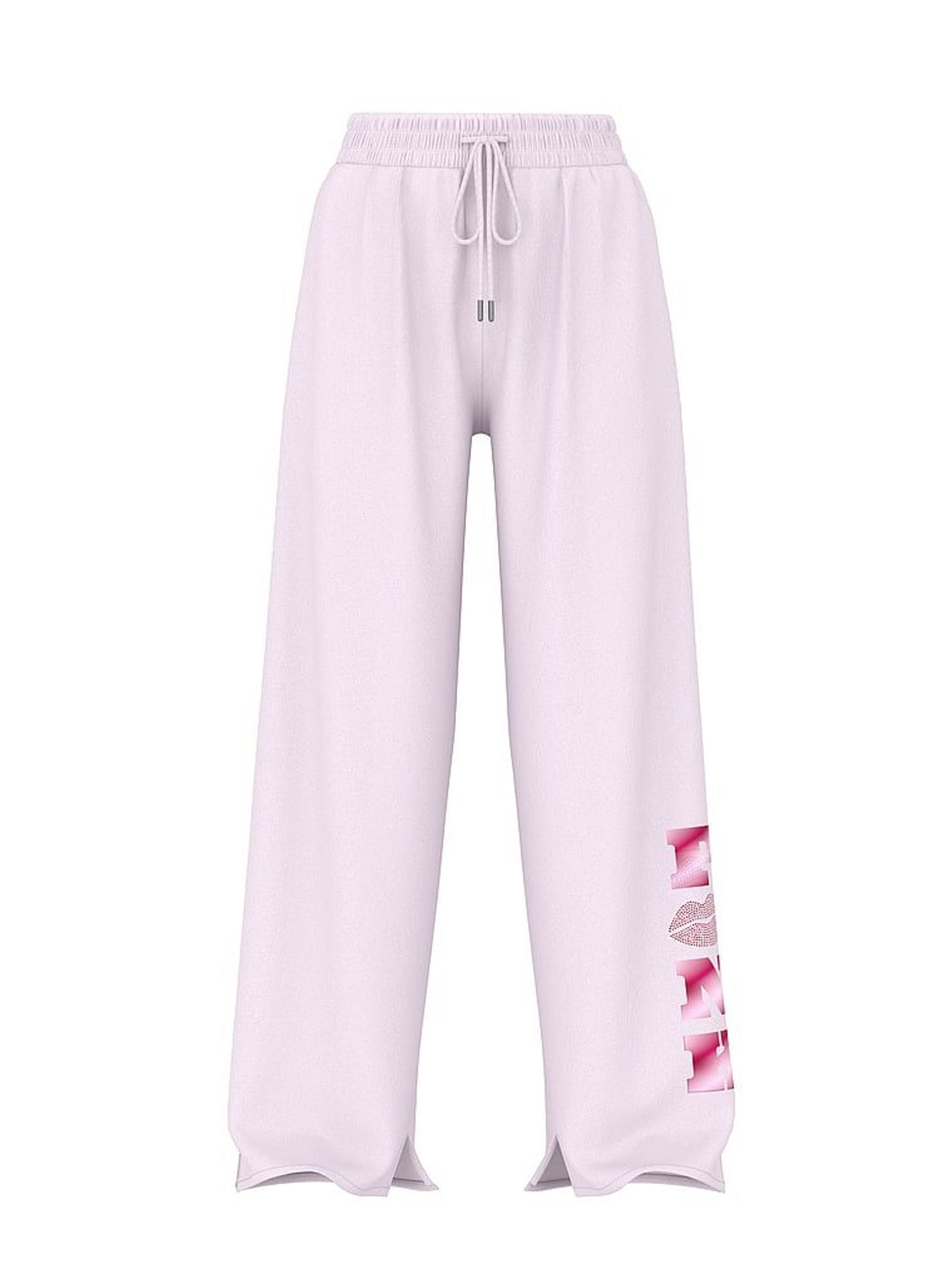 Washed Pretty Blossom Pink Fleece Wide Leg Joggers