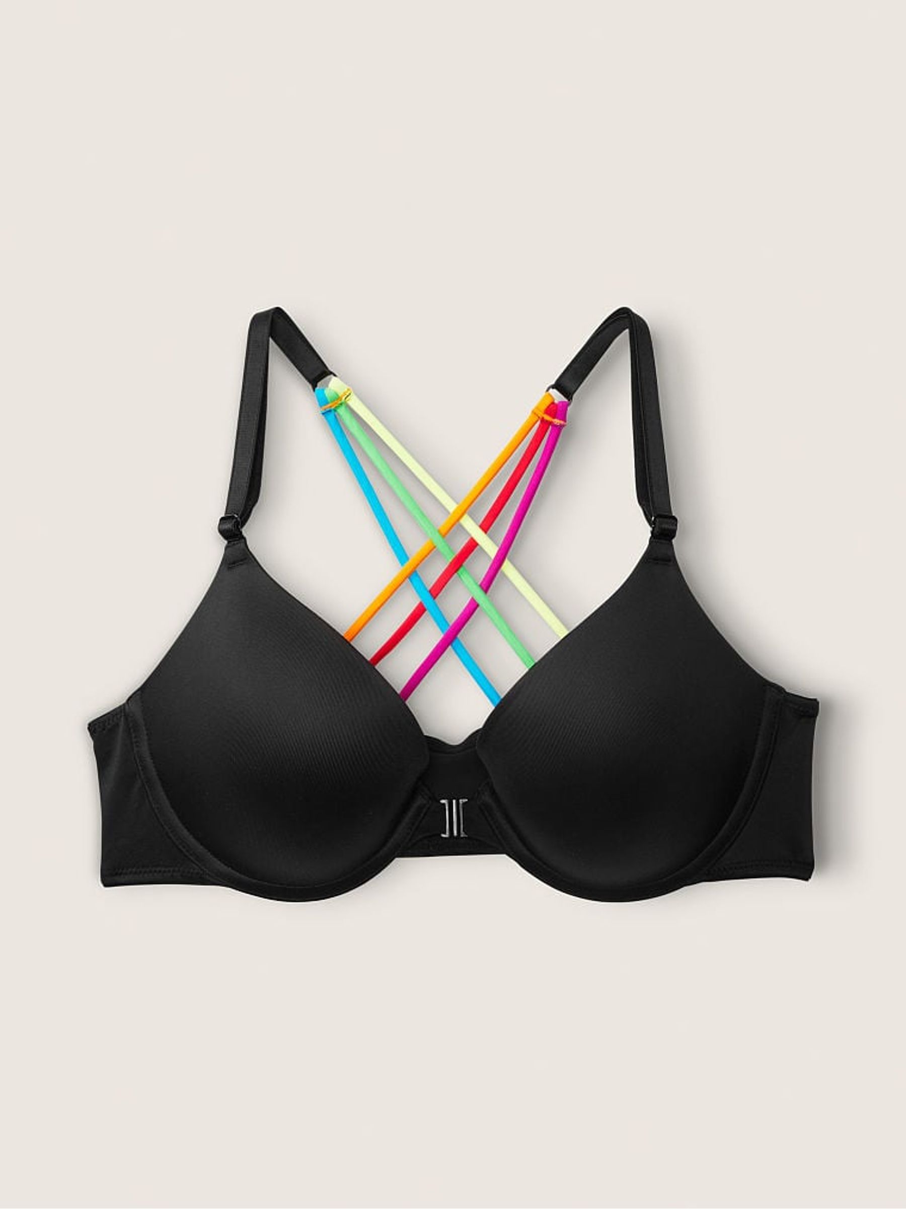 Black Rainbow Trim Push Up Front Fastening T-Shirt Bra