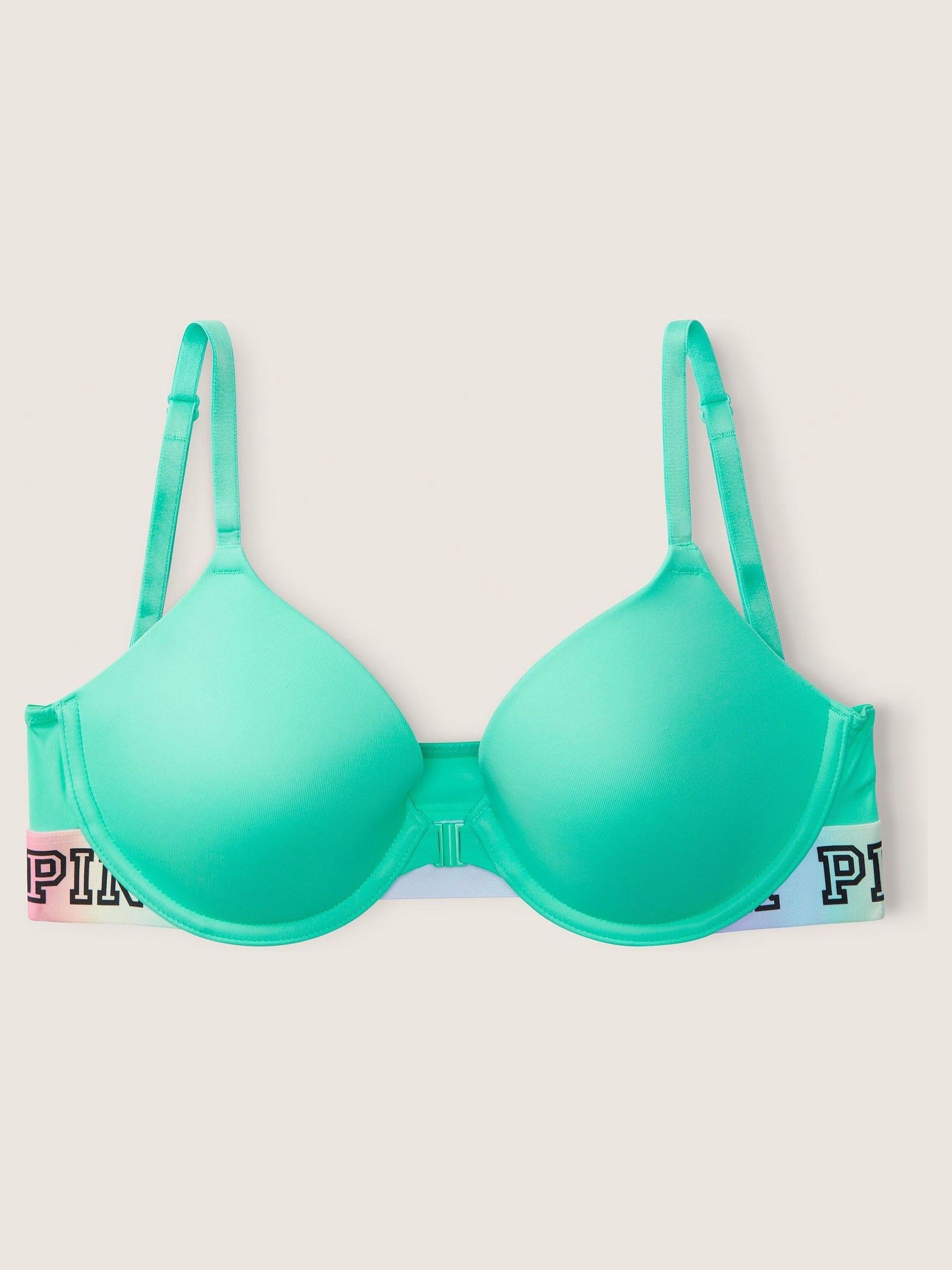 Teal Blue Ice Rainbow Band Lightly Lined Full Cup Front Fastening T-Shirt Bra