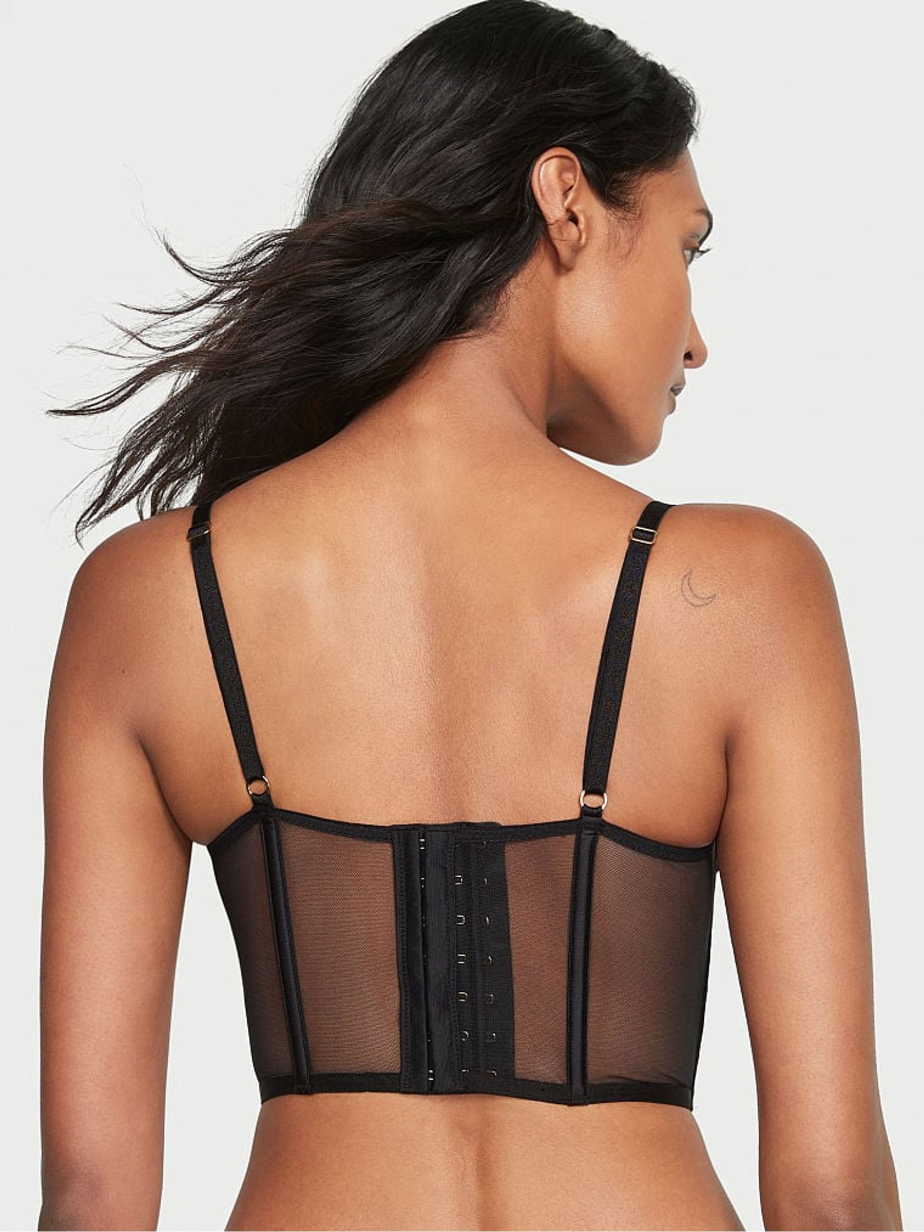 Discover our new, uniquely glamorous embroidery that goes beyond your average floral. You'll love the delicate details and cutouts on this curve-hugging corset that's made to wear out. Lift Lining. Unlined. Underwire. Straps Hooks. Fully adjustable straps. Back hook-and-eye closures. Details Fabric. Hand appliqued on tulle. Boning throughout. Hand wash.