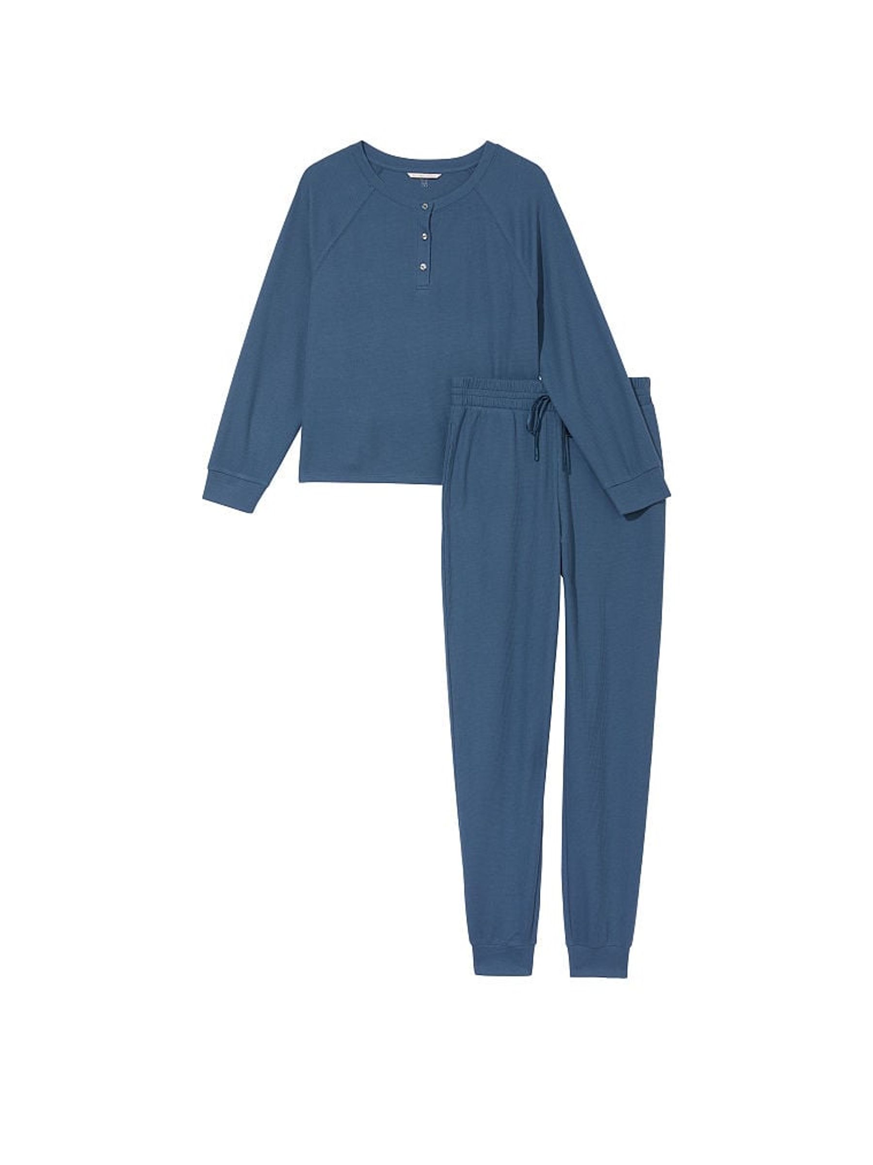 Back by popular demand: Our cute-and-cozy thermal fabric with a waffle texture. Whipped up into this must-have set featuring a henley button-up shirt and matching jogger pants perfect for relaxing all season long. Includes top and bottom. Relaxed fit. Long-sleeve crewneck. Henley button-front. Hits at hips. Pant with elastic waist and cuffs. Short: 26 inseam, Regular 28 inseam, Long 30 inseam. Machine wash.